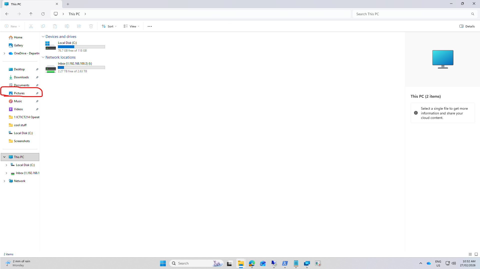 Step 2: left click on pictures on the side of the screen